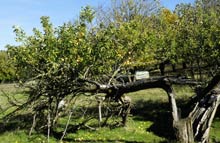 As the years passed, much worthy fruit was probably lost to windstorms, lightning strikes, marauding bears, and itchy cattle. Neglect, while not always benign, was probably not as harmful as misguided attention. Etter's foundation trees - some bearing up to twenty different grafted varieties - could not withstand the onslaught of a pruning crew mainly interested in smokewood. Who knows how many pomological treasures went up in smoke? So now, more than fifty years after Etter's death, almost nothing of his once magnificent apple experiment remains standing........