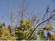 5. Cultivate reasonable expectations. A misguided quest for superficial perfection too often becomes the justification for toxic sprays. (This is called "clean" fruit.) Modern cosmetic standards for fruit may be somewhat unrealistic . Even here in California, with low humidity and no rainfall during the growing season, scab can blemish a certain percentage of our apple crop - depending on variety. Since we don't market much fruit, this doesn't bother us. At any rate, less than perfect fruit can make fine apple sauce and cider. Of course, some kinds of fruit are easier to grow organically than others. So....... 6. Make informed choices for both variety and rootstock . Nowadays, fruit growers have many options to choose from, and these may include disease-resistant selections: scab and fireblight resistant apple varieties, fireblight resistant pears, peaches immune to leaf curl. Just make sure that you need this type of resistance. If a disease is not a real problem, then ordinary varieties may produce higher quality fruit. Also, it is useful to remember that even the disease-resistant varieties are still susceptible to insect damage.