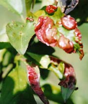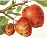 A sandpear hybrid like Kieffer may be very appreciated by pear growers in a fireblight infested region like Mississippi - but why plant this gritty fruit in Northern California or Oregon where exquisite dessert varieties like Comice and Bosc flourish? Sometimes the decision-making process is not as clear-cut or obvious. We have long been fascinated by the quandary afforded by disease-resistant apples: Is it better to grow a good scab-resistant variety like Liberty - or a great, but scab-prone apple like Spitzenberg? As nurserymen/ collectors we grow both. But we expect that many of our customers will ponder this dilemma. Rootstock selection can be even more critical to the health and longevity of the tree. Natural vigor may require a taller ladder, but it often means a healthier orchard. Knowing your soil type and its drainage tendencies is an important consideration. For instance, MARK apple rootstock thrives in heavier clay loams, but seems poorly adapted to sand typical of irrigated high desert plantings. Mazzard cherry tolerates winter "wet feet" better than most other cherry roots. And the Malling- Merton apple series (eg.MM111) was developed in part to resist soil infestations of wooly apple aphis. Organic growers should also keep in mind that many modern orchard practices were developed in conjunction with a heavy spray program. So intensive (close) spacing of dwarf trees in trellised rows typically means more fungus diseases unless regularly sprayed. Likewise, many genetic dwarf varieties, especially peaches, have such a dense growth habit that disease problems are inevitable without chemical intervention.